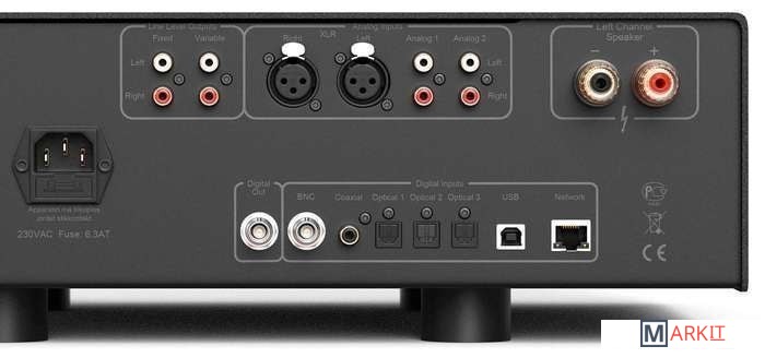 Усилитель способен работать практически с любой нагрузкой, в том числе – благодаря выходной мощности в 250 Вт на канал. Помимо этого, он поддерживает стриминг по протоколам UPnP и Airplay 2, готов к подключению к системе Roon, поддерживает MQA и DSD. И это не говоря уже про исчерпывающий набор традиционных аналоговых и цифровых входов. Благодаря значению фактора демпфирования более 4000 единиц, усилитель легко может работать даже с 2 Ом-ми колонками, перед которыми пасуют гораздо более дорогие аппараты.