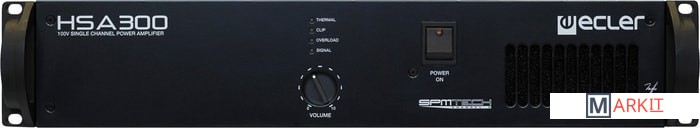 Ecler HSA300 — одноканальный усилитель с выходным линейным напряжением 100 В (при высоком импедансе). В нем реализована собственная технология Ecler SPM 100 — Channel N, позволяющая подключать динамики с линейным напряжением 100 В без линейных трансформаторов на 100 В, в отличие от традиционных усилителей этого типа. Это дает множество преимуществ, главное из которых — великолепное качество звучания, особенно на низких частотах.